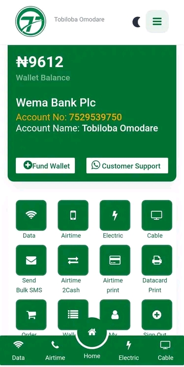 - Diverse Product Offerings: Sell airtime, recharge cards, data cards, data bundles, cable subscriptions, electricity tokens, and bulk SMS.